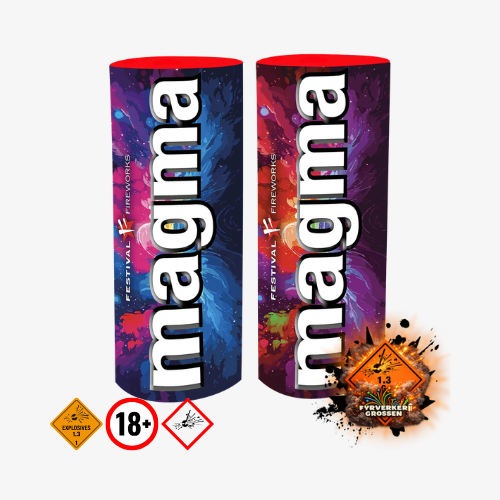 Magma Àr ett 2-pack med fyrverkerifontÀner som erbjuder en fÀrgstark och ljudlig upplevelse utan höga knalleffekter. Det första paketet sprider fÀrger i blÄtt och guld, medan det andra erbjuder en blandning av rött, grönt och silver. Dessa fontÀner fÄngar omedelbart publikens uppmÀrksamhet och Àr perfekta för att inleda vilken festlighet som helst. Med en höjd pÄ 3 meter och en varaktighet pÄ 25 sekunder per fontÀn, skapas en förtrollande och minnesvÀrd början pÄ din fyrverkerishow