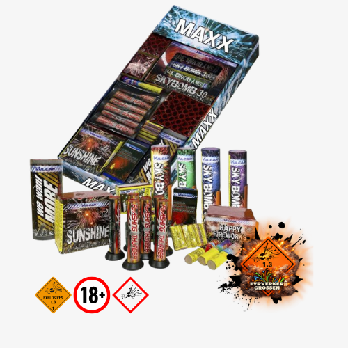MAXX - En maxxad mix av olika fyrverkerier som rÀcker hela kvÀllen. I satsen finns rejÀla artiklar med större tÄrtor och bomber i olika kaliber